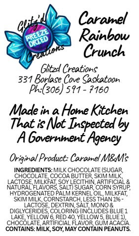 Colorful, crunchy, and caramel-filled. These freeze-dried bites start with a rainbow chocolate candy shell and a buttery caramel center, then get a cosmic crunch makeover that melts in your mouth with every crunchy bite. Each piece is a burst of golden sweetness wrapped in vibrant color, perfect for gifting, snacking, or adding sparkle to your candy bar setup. Warning: they disappear fast.